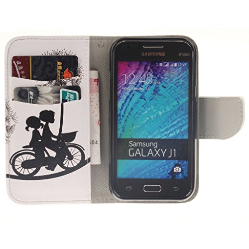 Qimmortal Custodia a libro per iPhone 4/4S, con protezione per lo schermo in vetro temperato, Magnetica, alta qualità, classica, colorata, tema: tigre, in similpelle, Con Funzione Stand e Slot Carta Di Credito, supporto perfetto per iPhone 4/4S, PU, Bike Dandelion, Samsung Galaxy J1 2015