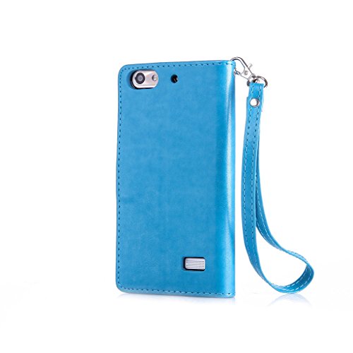 Qimmortal - Custodia a portafoglio con design a flip per iPhone 6, 6S con protezione per schermo in omaggio, antigraffio, con retro morbido in silicone, stampa elegante dorata di farfalla con fiori, realizzata in pregiata pelle di poliuretano, dotata di scomparto per carte di credito e laccetto magnetico, compatibile con iPhone 6 / 6S, PU, Blue, Huawei Honor 4C/Huawei G Play Mini
