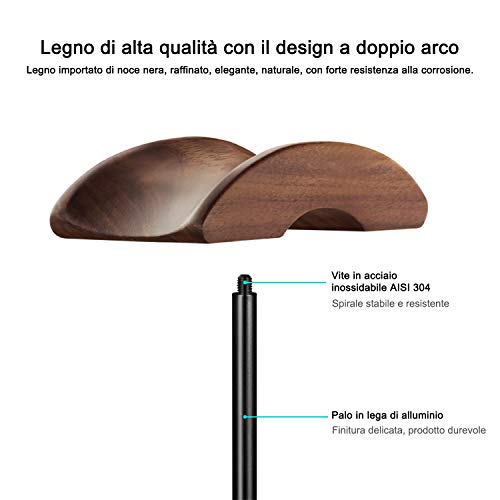 Supporto in Legno e Metallo Opaco: composto da una porta cuffie in legno di noce naturale e una struttura in metallo di alta qualità.