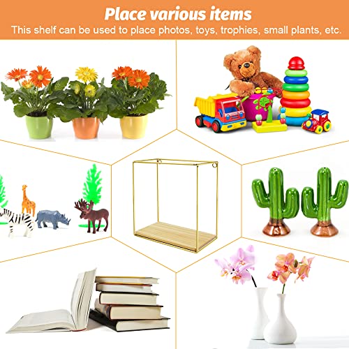 QINERSAW 3 PCS Mensole da Parete Quadrate Mensole Geometriche da Parete Mensola da Muro Oro Mensole da Parete Quadrate Mensole a Parete in Metallo e Legno per Soggiorno Cucina Camera da Letto