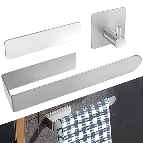 QINERSAW Porta Asciugamani Bagno Adesivo Portasciugamani Autoadesivo Portasciugamani Adesivo in Acciaio Inossidabile 304 con 1 Gancio Autoadesivo Accessori per Bagno, Cucina, 22.5 * 4.5CM (Argento)