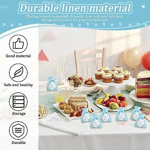 QINERSAW 24 Pz Sacchetti Battesimo Bambini Blu Sacchetti Bomboniere Lino con Coulisse Sacchetti Confetti Nascita 10 * 8cm Regalo Addobbi Bambini Decorazioni Battesimo Nascita Compleanno Feste