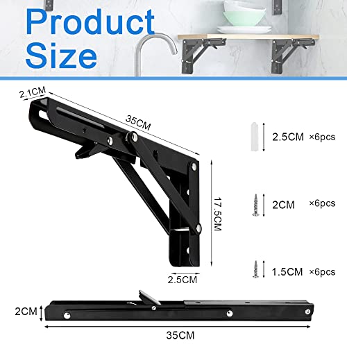 QINERSAW 2 Staffa Pieghevole 350 mm Supporto Ripiano Pieghevole Staffe Pieghevoli per Mensole Staffe Pieghevoli per Tavolo da Muro per Cucina, Bagno, Carico Massimo 70 KG (Nero)