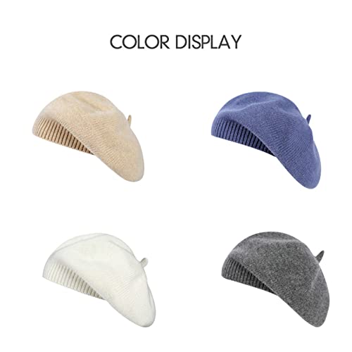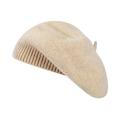 Qinfren Berretto Francese da Donna Classico Tinta Unita Berretti Berretto Lavorato a Maglia Caldo Morbido Inverno Autunno Cappelli, Beige, Taglia Unica