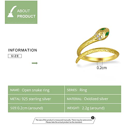 Qings Oro Anelli Serpente per Donne Snake Ring Argento Sterling 925 Anello Serpente Animale con Occhi Verdi Regolabile Aperto Vintage Retrò Pollice Anelli