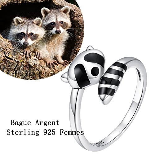 Qings Anello Donna Argento Sterling 925 - Vintage Anelli di Apertura Regolabile Procione per Ragazze Bambina Gioielli Animali Neri Festa di Promessa Anniversario Elegante Regalo Moda
