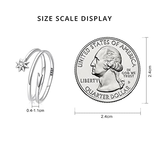 Qings Anello Meteoriti, Intrecciare Zirconia Cubica Anello Eternity Anello in Argento Sterling 925 con Stella dei Desideri Anello Aperto Anello Regolabile Regalo per Donna Ragazza
