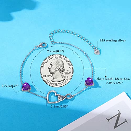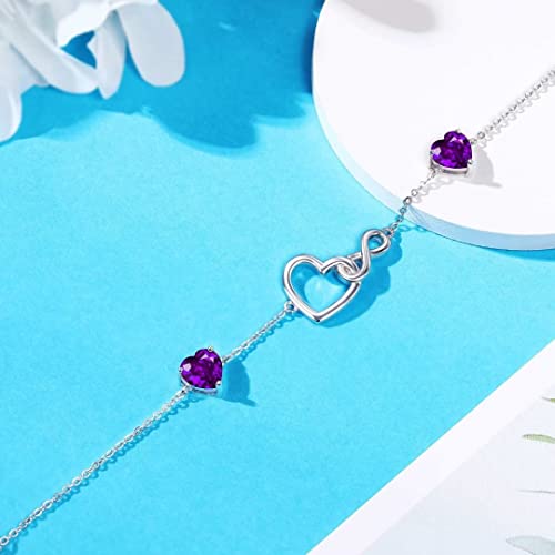 Qings Bracciale Cuore Infinito Braccialetti Viola Ametista in Argento Sterling Bracciale Regolabile con Pietre di Nascita di Febbraio Gioielli con Zirconi per Donne e Ragazze Regalo di San Valentino