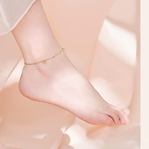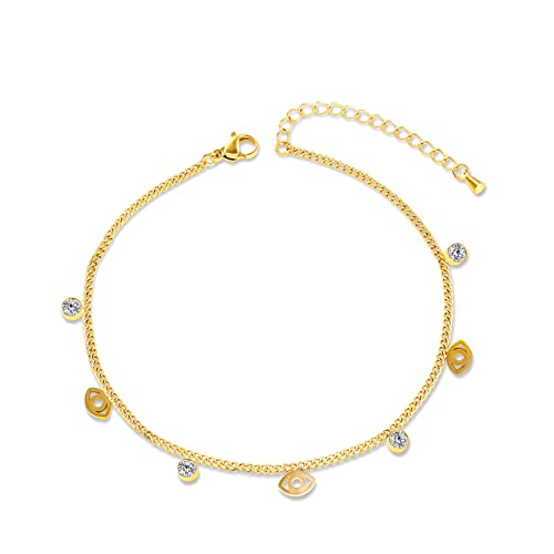 Qings Cavigliera Donna Oro Cavigliere Regolabili Malocchio con Piccole Oro Perline e Zirconia Cubica CZ, Regolabile Estate Catena del Piede Placcata in Oro Spiaggia Gioielli per Ragazze, 20+3cm