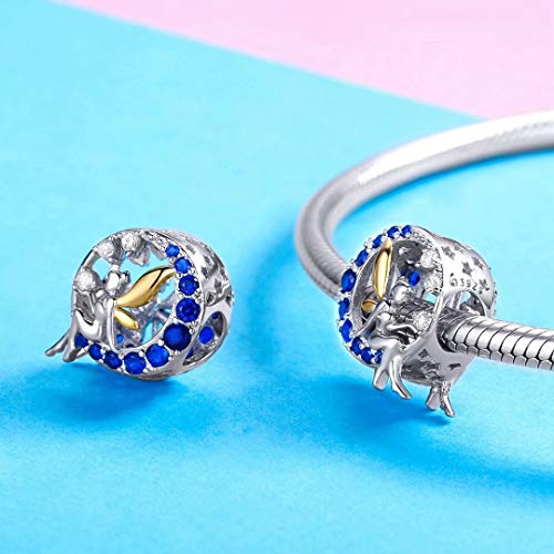 Qings Charm Fatina, in Argento Sterling 925 Charms Fatina Della Luna Blu Charms Ciondolo a Forma di Angelo Compatibile con Braccialetti per le Donne Ragazze
