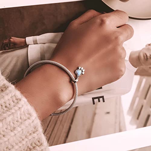 Qings Ciondoli con stampa della zampa dell'animale domestico Perline di impronte carine Opale a forma di cuore 925 sterline d'argento Placcato in platino per Bracciale Collana Regalo per Donne Ragazze