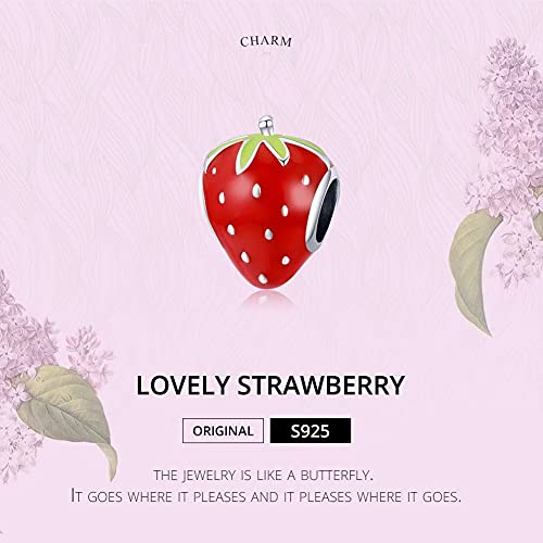 Qings Ciondolo a Forma di Fragola Rossa Con Perline in Argento Sterling 925, il Ciondolo a Forma di Frutta Smaltata è Adatto a Tutti i Bracciali e le Collane