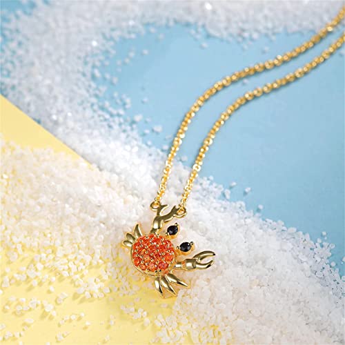 Qings Collana con ciondolo granchio lucido 925 sterline d'argento Spiaggia del mare d'estate Vintage ispirato all'oceano Placcato oro 18K 45CM Catena regolabile Regalo gioielli delicati donne ragazze