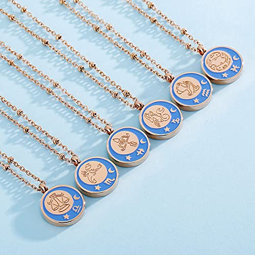 Qings Oro Rosa Collana con Ciondolo Zodiaco 12 Costellazione Oroscopo Segno Collane Anniversario Compleanno Gioielli Regali per Donne Ragazze