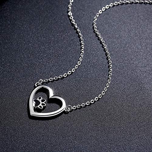 Qings Collana Cuore Donna Amore Ciondolo Collana in Argento Sterling 925 con Animale Zampa Stampa Regalo di Natale per Ragazze Fidanzata Madre