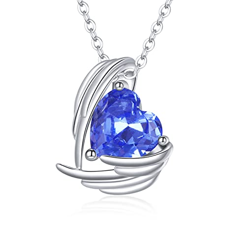 Qings Collana a Cuore da Donna - Collane con Ali D'amore Regolabili in Argento Sterling CZ San Valentino Ornamenti di Natale Regali per Ragazze Madre Moglie (Vai blu Giugno)