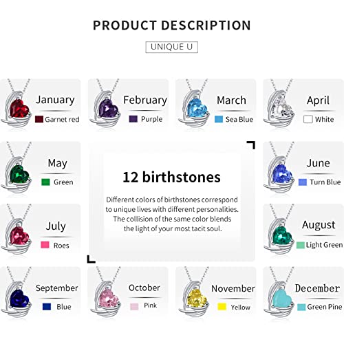 ❤ 【Collana da donna in argento 925】 Questa collana con ciondolo a forma di cuore d'amore simboleggia l'amore e l'innocenza. Ci sono 12 diversi colori di gemme che corrispondono alla pietra portafortuna di ogni mese. Puoi scegliere il colore in base al mese di nascita.