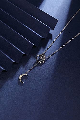 Qings Collana Lariat Y Donna Sole Luna Collana Argento Sterling 925 Collana Semplice Collana con Mezzaluna Collana con Ciondolo Sole e Luna Regalo Donna Originale per Mamma Donna