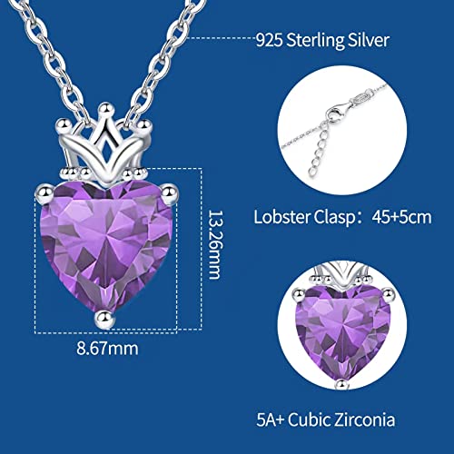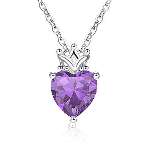 Qings Corona della Principessa Pietra Portafortuna Collana Argento Sterling 925 Amore Cuore Collana con Ciondolo Cubic Zirconia Collane Gioielli Regalo per Figlia Ragazze Donne