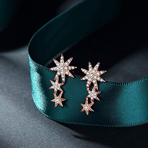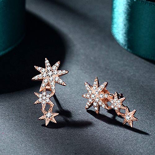 Qings Orecchini a Bottone a 3 Stelle in Argento Sterling 925 Orecchini a Ciondolo con Strass Starburst in oro Rosa 14K Regalo di compleanno per le Donne