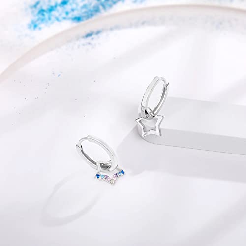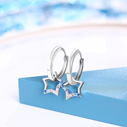 Qings Orecchini a Cerchio con Ciondolo Stella per Donna, Argento Sterling 925 Huggie Ipoallergenico Orecchini Cubic Zirconia colorato Stella Orecchini Compleanno Regalo per Ragazze Adolescenti