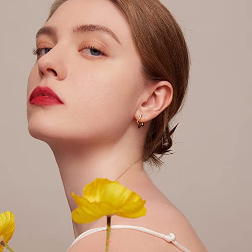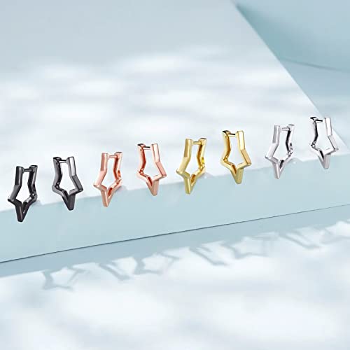 Qings Orecchini a Cerchio Stella per Donne Argento Sterling 925 Stella Orecchini Piccoli a Cerchio Oro Antiallergico Orecchini Huggie Gioielli di Regalo per Ragazze