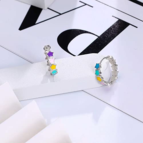 Qings Orecchini Cerchio Stelle Ragazze Arcobaleno Simpatici Orecchini Huggie Compleanno Regali per Donna Bambina Mamma e Figlia