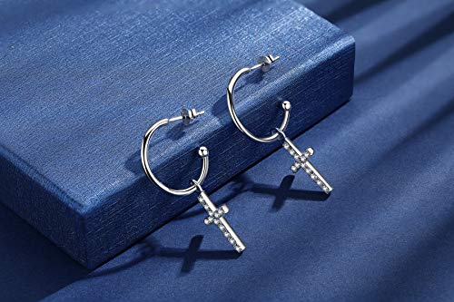 Qings Orecchini a Croce Orecchini in Argento Sterling 925 Cz Orecchini a Cerchio con Pendente a Croce Mezza Orecchini per Donne Ragazze Compleanno