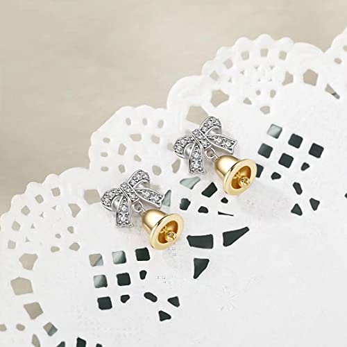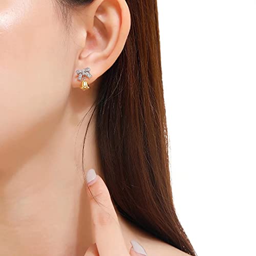 Qings Orecchini Donna Orecchini a Campana con Fiocco in Argento Sterling 925 CZ Orecchini Campana D'Oro 18K Carini Squisiti Scintillanti Personalizzati per le Donne Adolescenti Figlia