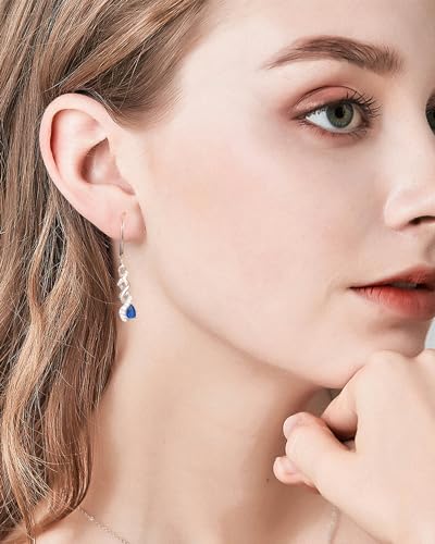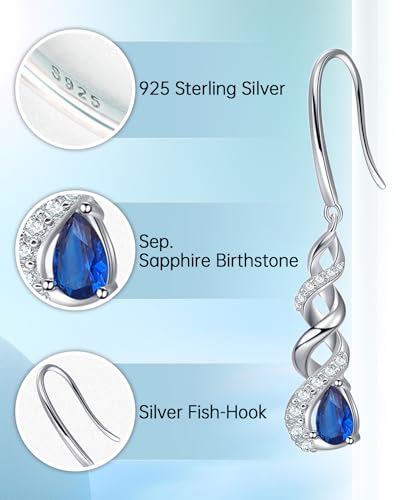 Qings Orecchini Infinito Birthstone - Orecchini Zaffiro Blu Scuro Settembre Pendenti Donna Argento 925 Zirconia Cubica Orecchini Scintillanti Twist Stroili Regalo di Gioielli per Ragazze Donne