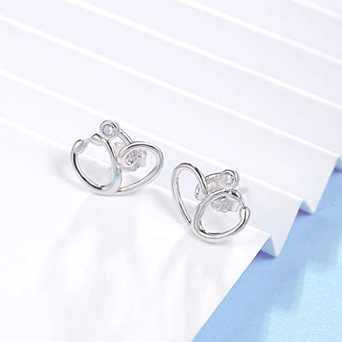 Qings Orecchini Perno Forma Cuore con Stetoscopio 925 Argento Sterling Pietra Portafortuna Giugno Pietra di Luna Orecchini Regali per Donna Infermiere Dottore RN Studente Medicina