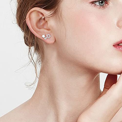 Qings Orecchini di Stella in Argento Sterling 925, Triplicare Stelle Brillante Zircone Scalatori Orecchini Ipoallergenici Orecchini a Perno Regalo di Compleanno per Donna Ragazze