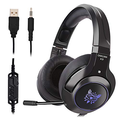 Qingta Gaming Headset, Confortevole Illuminazione LED Cuffie Over-Ear con Microfono per PS4 Nintendo Xbox One PC Laptop Mac Tablet con cancellazione del Rumore e Controllo del Volume