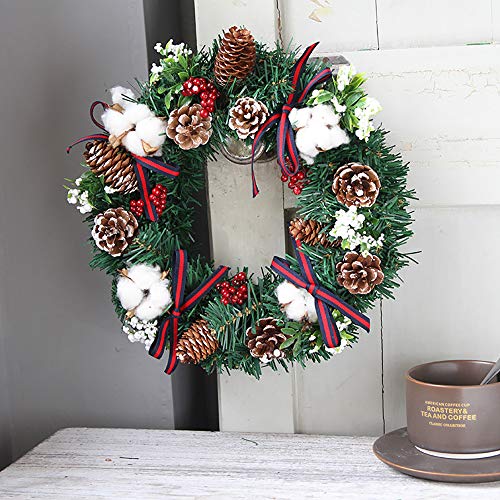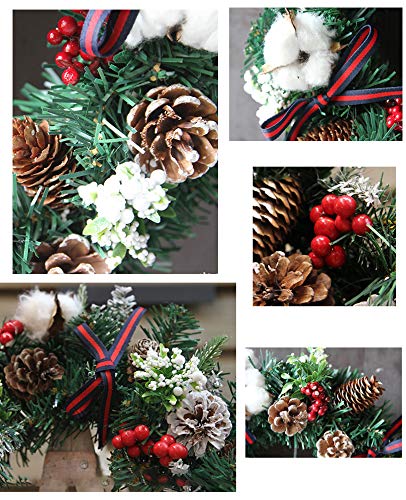 ★ Corona dell'Avvento decorativa con bacche, pigne e cotone, adatta per essere appesa e legata.