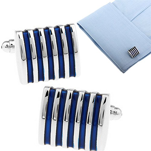 Qinlee - Gemelli da uomo con motivo a righe blu, per camicia, alla moda, accessori per matrimonio, compleanno, banchetto, regalo perfetto per te o per qualcuno