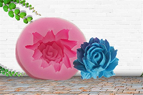 Qinlee Stampo in silicone a forma di peonia, per cuocere e creare torte, muffin, sapone, biscotti, cioccolato, cubetti di ghiaccio 3D, colore casuale