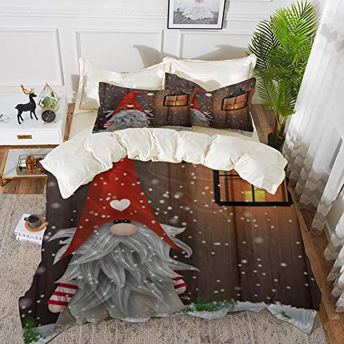 Qinniii 3-Piece Bedding Set,Gnomo Carino Elfi folcloristici di Natale alla Moda,100% Microfibra 1 Copripiumino 220 x 240 cm+ 2 Federa 60 * 80 cm