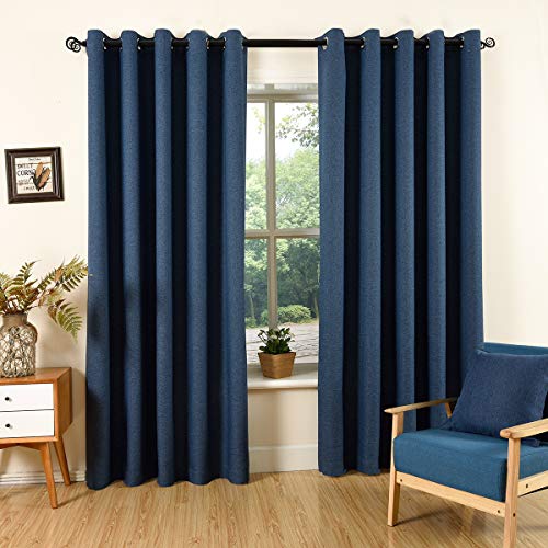 QINUO HOME Tende oscuranti in finto lino, 90 x 72 - Tende isolate Theraml con occhielli per camera da letto, blu navy, set di 2 pannelli