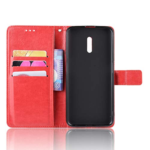 QiongniAN Cover per Oppo Reno,Custodia per Oppo Reno,Custodia per Oppo Reno CPH1917 PCAM00 PCAT00 Custodia Portafoglio in Pelle Flip Case Red
