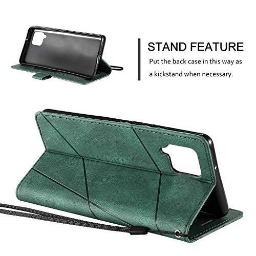 QiongniAN Cover per Samsung Galaxy M12,Custodia per Samsung SM-A125F/DSN Galaxy A12 2020 / SM-A125F/DS SM-A125M/DS SM-A125F SM-A125M SM-A125N Custodia in Pelle PU Flip Case Green