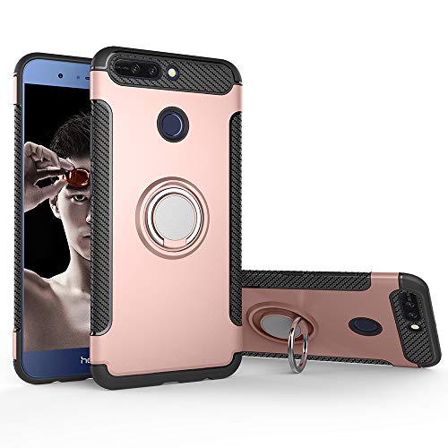 QiongniAN Custodia per Huawei Honor 9 Lite LLD-AL00 LLD-TL00 LLD-L22A LLD-AL10 LLD-L31 / Honor 9 Youth Edition Custodia Case Cover 360 Gradi Anello Magnetico Rotante in Metallo Pink