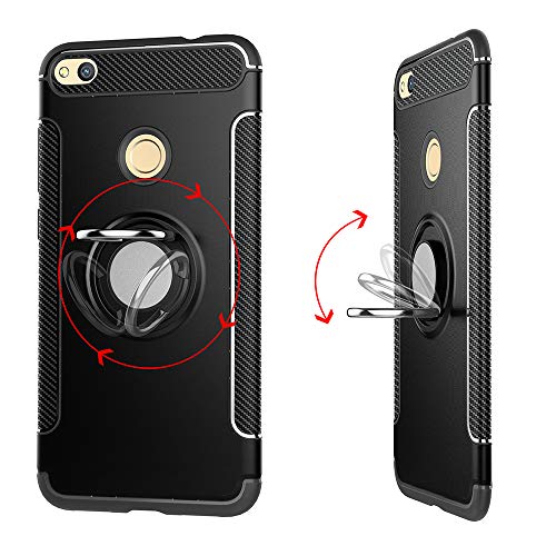 QiongniAN Custodia per Huawei P8 Lite 2017 Pra-LX3 Pra-LA1 PRA-L31 / P9 Lite 2017 Pra-LX1 / GR3 2017 Pra-LA1 Pra-LX2 Custodia Case Cover 360 Gradi Anello Magnetico Rotante in Metallo Pink