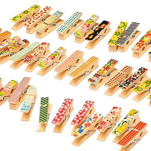 Qiorange Mini mollette in legno, clip colorate, per foto, carta, 100 pezzi 50pcs Set A