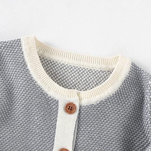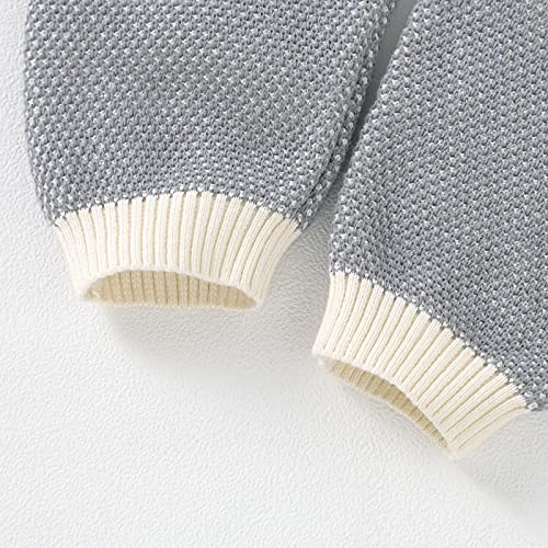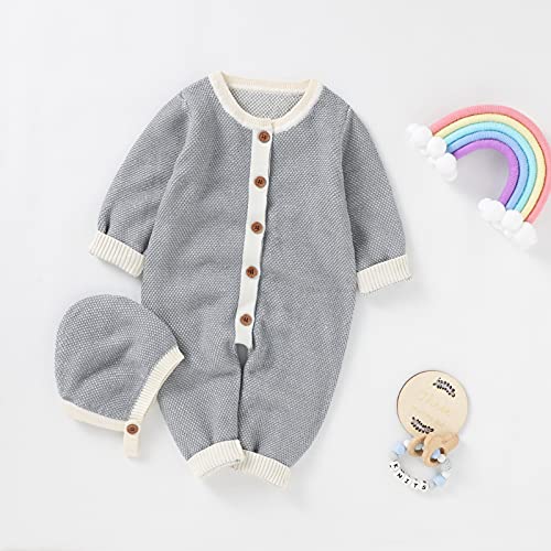 Qiraoxy - Tutina da neonato a maglia a maniche lunghe, con cappello caldo, 2 pezzi, tuta da neve calda (6-12 mesi, Grigio)
