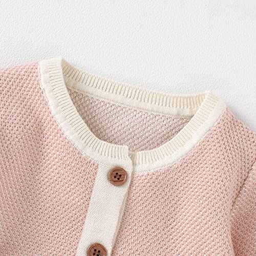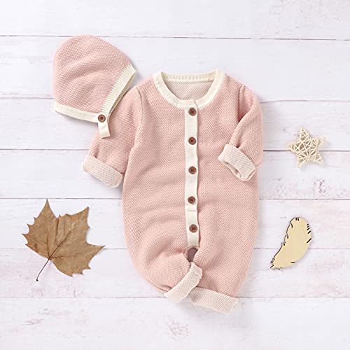 Qiraoxy - Tutina da neonato a maglia a maniche lunghe, con cappello caldo, 2 pezzi, tuta da neve calda (3-6 mesi, Rosa)