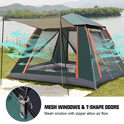 Qisan Idraulic Dome Tent Automatic Camping Tents 3-4 persone Canopy with Carrying Bag Easy to Set up and Package for Outdoor Backpacking Hiking Green