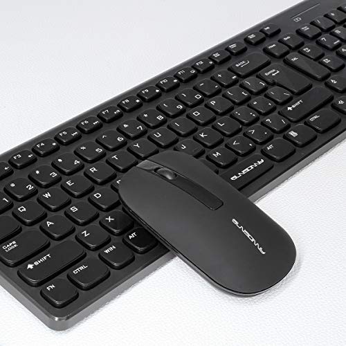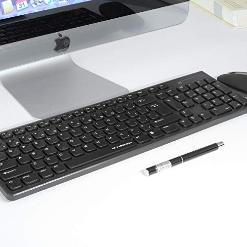 Qisan Tastiera e mouse wireless Combo Set Tastiera senza fili 104 tasti con tasti 3 senza fili Mouse-Nero