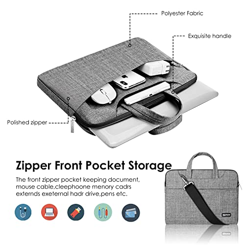 Qishare - Borsa per computer portatile da 13,3 a 14 pollici, tracolla regolabile e manico occultabile, raccoglitore per documenti (13,3 - 14 pollici, linee grigie)