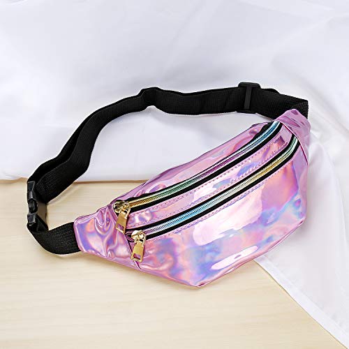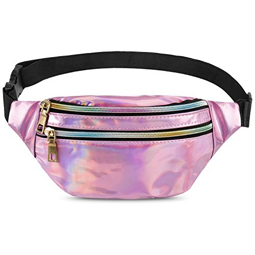 Qisiewell Basic Fashion, Marsupio sportivo da escursionismo con 2 scomparti e chiusura lampo, regolabile, per uomo e donna, Laser rosa., normale,
