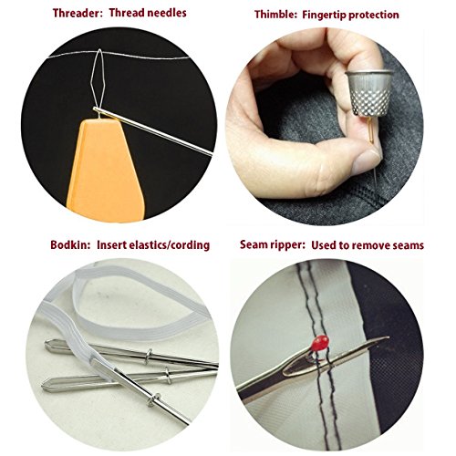 ❤235 utensili da cucire Premium: 60 aghi per cucire, 24 colori per i fili, 15 spille da balia, 110 perni per la testa della perla, 6 pulsanti, 5 perni diritti, 2 filetti, 1 nastro di misura, 1 tagliaunghie tagliente, 1 forbice in acciaio inossidabile, 1 scarificatore di cucitura, 1 matita, 1 puntaspilli e molti altri - Tutto ordinatamente riposto in modo sicuro.